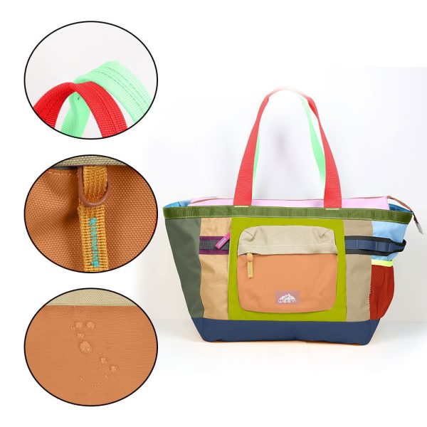 Boasting a vibrant patchwork design with neat stitching, this water-resistant, tear-resistant tote bag features widened reinforced handles for comfy carrying. It has a spacious main compartment and hidden pockets for organized storage, fitting laptops, toiletries and more. Lightweight and foldable, it’s ideal for commutes, travels and daily outings.